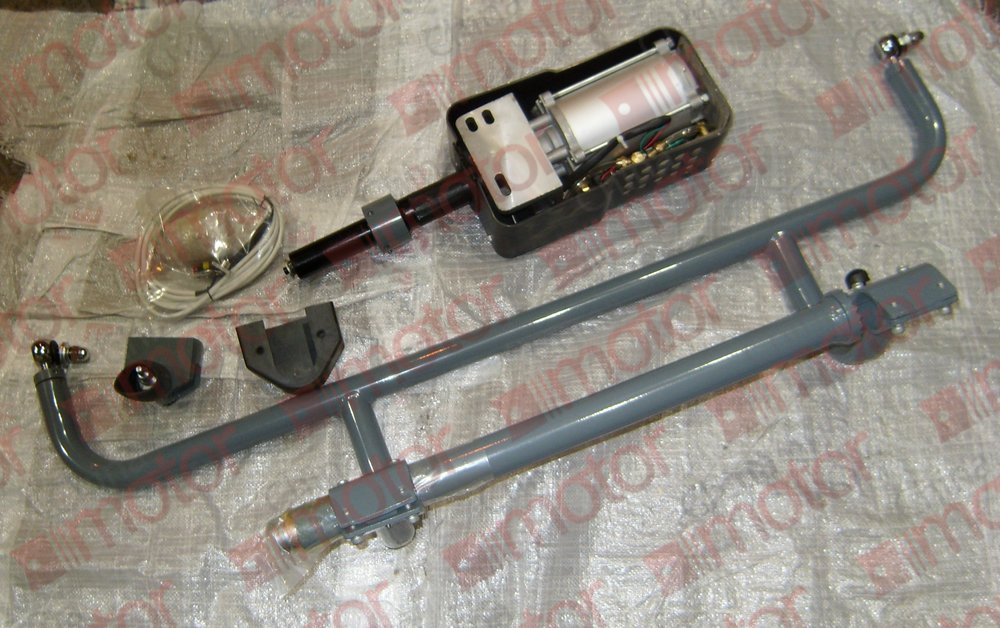 Механизм привода двери в сборе (пассажирской) 1-створч. FOTON BJ6122 средней (стойка,рычаги,шарниры,цилиндр,клапан) 1200мм
